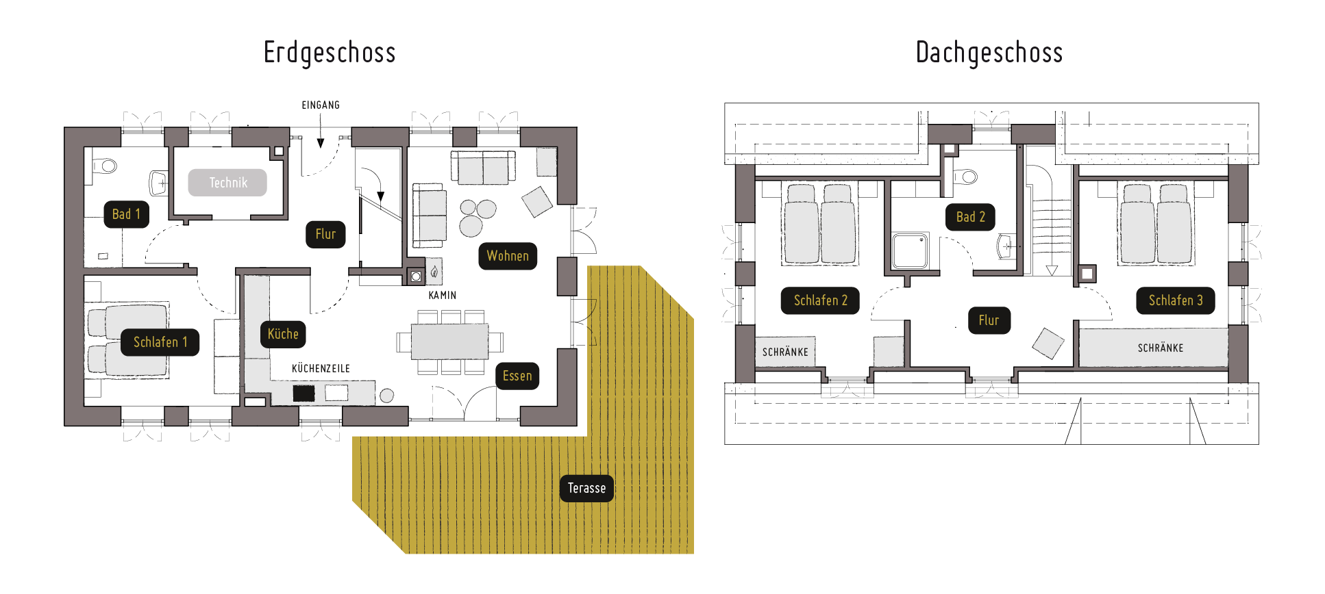 Dieses Zuhause strahlt nicht nur Wärme aus – mit Echtholzparkett, Fußbodenheizung und offenem Kamin ist es im Innern zu jeder Jahreszeit wohl temperiert und behaglich.